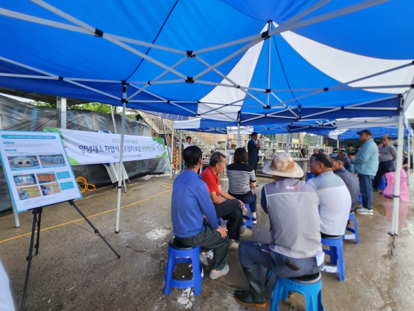 이번 차압식 건조장치 평가회는 ‘양념채소 차압식 건조장치 보급’ 시범사업 설명, 간이 송풍장치 도입을 통한 마늘 수확 후 생리장해 경감 기술연시 및 전시, 질의 응답 순으로 진행됐다.