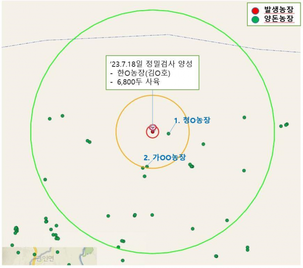 또한 발생농장 반경 10km 이내 방역대를 설정하고 추가 확산 차단을 위해 이동제한 및 집중소독, 정밀검사를 실시하고 있다.