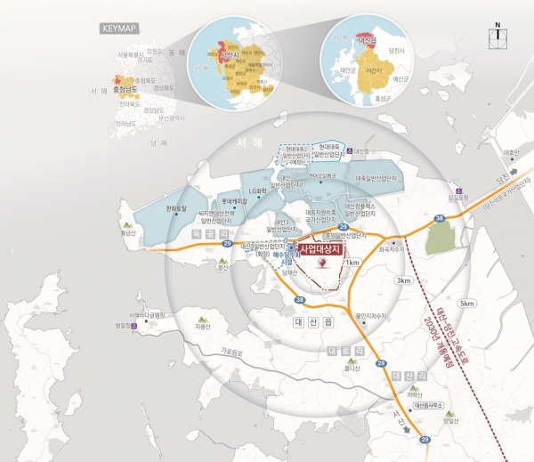 서산시 대산읍 일원은 석유화학 중심의 공장 및 산업단지가 집적화된 지역이나 그간 기업 유치에 필요한 분양 산업단지가 없어 기업들의 입주 수요를 충족시키지 못해왔다.