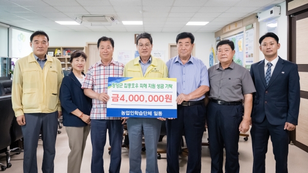 [충청뉴스큐] 농촌지도자청양군연합회, 생활개선청양군연합회, 품목농업인연구협의회, 청양군4-H본부, 청양군4-H연합회 등 청양지역 농업인 학습단체 5곳이 지난 26일 집중호우 피해 농가의 신속한 복구를 위해 성금 400만원을 청양군에 맡겼다.