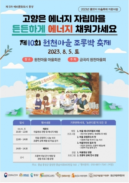 [충청뉴스큐] 에너지 자립마을인 결성면 금곡리 원천마을에서 오는 8월 5일 10시 30분 ‘제10회 원천마을 조롱박 축제’가 개최된다.