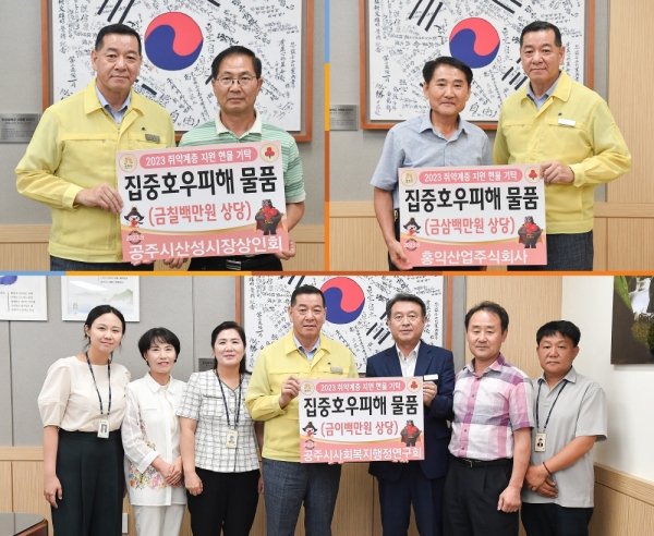 시에 따르면, 재경공주향우회에서 1000만원 상당, 재경공주산악회에서 300만원 상당의 물품을 기탁했으며 관악선후회에서 500만원을 전달하며 나눔을 실천했다.