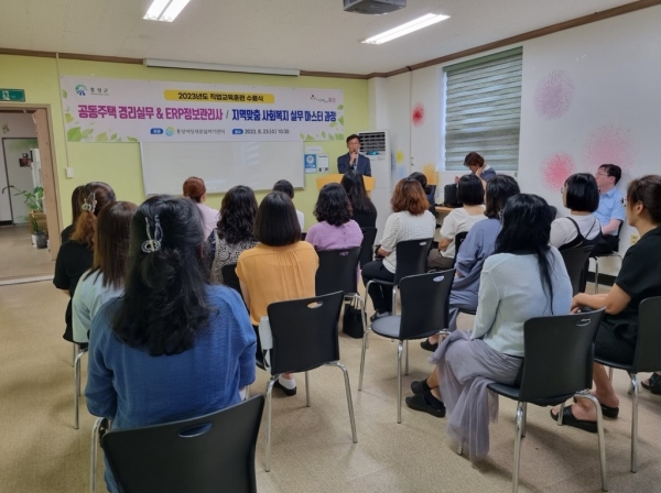 [충청뉴스큐] 홍성여성새로일하기센터는 23일 수료생과 관계자 등 37명이 참석한 가운데 공동주택 경리실무 및 ERP정보관리사, 사회복지 실무마스터 2개 교육과정 수료식을 개최했다.