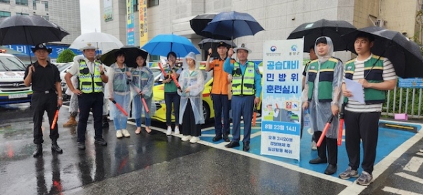 훈련은 오후 2시를 기해 민방위 경보시설에서 공습경보가 울리는 것을 시작으로 차량통제 및 긴급자동차 비상차로 확보훈련 훈련 주민대피 훈련 다중이용대피시설 훈련순으로 실시됐다.
