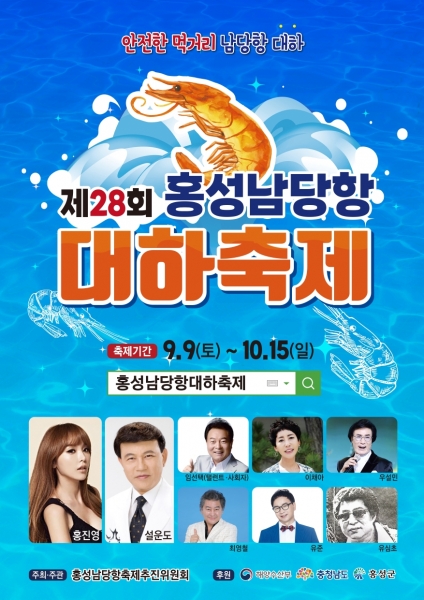 오는 9월 9일부터 10월 15일까지 제28회 홍성남당항 대하축제가 아름다운 남당항 일원에서 펼쳐진다.