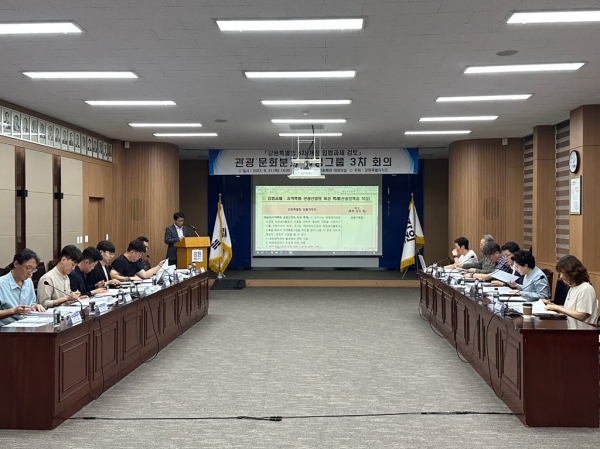 [충청뉴스큐] 강원특별자치도는 8월 31일 오후 2시, 강원자치도 제2청사 환동해관 대회의실에서 도의원, 전문가, 도 담당 공무원 등 20여명이 참석한 가운데 강원특별법 3차 개정 관광문화분야 특례발굴을 위한 워킹그룹 회의를 개최했다.