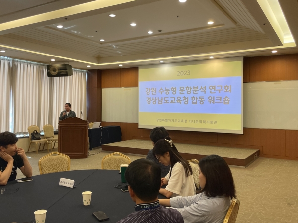 [충청뉴스큐] 강원특별자치도교육청은 9월 2일부터 9월 3일까지 이틀간 횡성 웰리힐리파크에서 강원 수능형 문항분석 연구회와 경상남도교육청 대학진학전문위원단 문항분석 출제팀이 합동 워크숍을 실시했다고 밝혔다.
