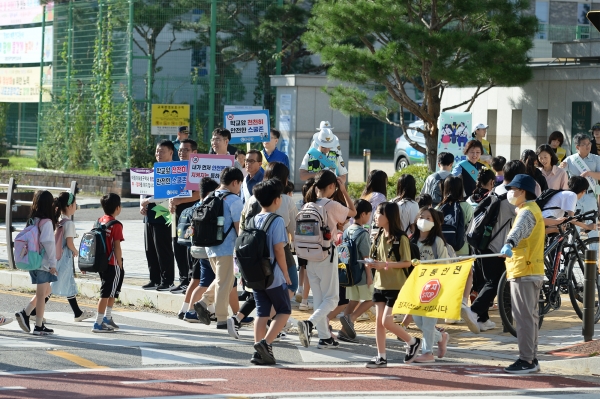 학교 앞을 통행하는 운전자를 대상으로 피켓과 현수막 등을 활용해 어린이보호구역 내 규정속도 준수, 불법 주·정차 금지 등 기초 교통안전 수칙을 집중적으로 홍보하고 안전 우선의 교통문화 정착을 위한 분위기를 조성했다.