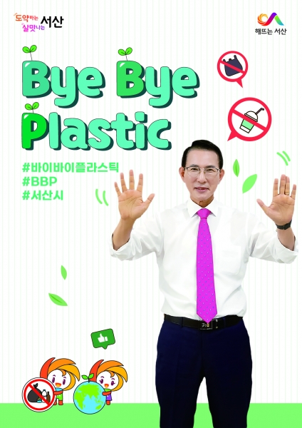 이완섭 서산시장은 플라스틱과 작별한다는 뜻으로 양손을 흔들며 바이바이 플라스틱 챌린지에 참여했다.