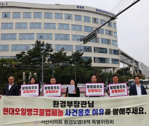 [충청뉴스큐] 서산시의회 칠전리 부숙토 및 현대오일뱅크 페놀 관련 환경오염대책 특별위원회는 지난 13일 환경부를 항의 방문하고 규탄 집회를 가졌다.