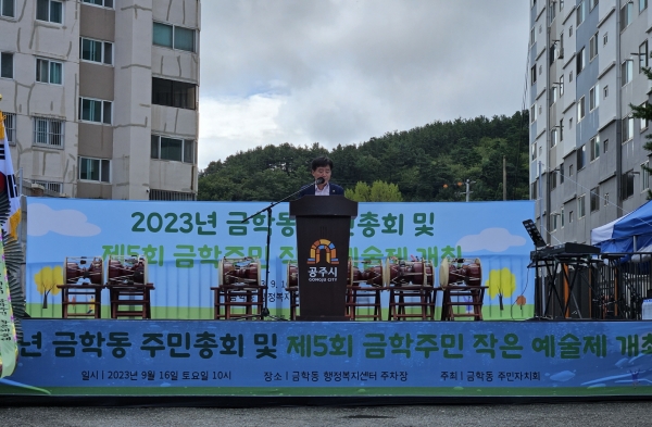 또한 총회가 끝난 후에는 생활체조, 라인댄스, 합창, 난타 등 금학동 주민자치프로그램 수강생들의 공연이 이어져 주민들이 함께 즐기고 소통하는 축제의 장이 펼쳐졌다.