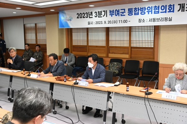 [충청뉴스큐] 부여군은 지난 20일 부여군청에서 민·관·군·경 지역 통합방위태세 확립을 위한 ‘23년 3분기 부여군 통합방위협의회 정기회의’를 개최했다.