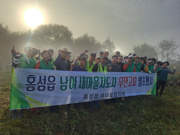 지난 22일 홍성읍 새마을지도자협의회는 회원 40여명이 참여한 가운데 신성리 및 고암리 공동묘지 200기의 무연분묘에 대한 벌초 및 잡목, 잡초 제거작업을 실시했다.