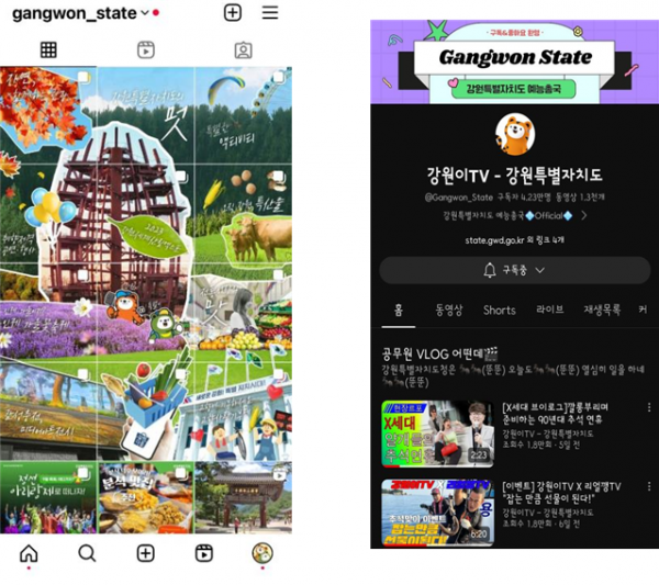 특히 인스타그램에서는 2023 강원세계산림엑스포와 2024 강원 동계청소년올림픽대회 등 메가 이벤트를 비롯한 축제·관광·안전정보 등의 다채로운 소식을 격자 구성의 ‘인피드플로잉’ 기법을 활용해 참신함과 정보 전달의 기능을 함께 충족시켜 평가단으로부터 호평을 얻었다.