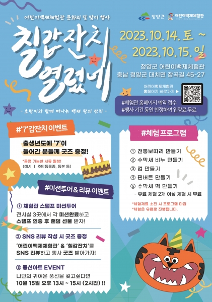또 출생 연도에 ‘7’이 들어가는 관람객에게 기념품을 증정하는 ‘7갑 잔치’ 이벤트를 비롯해 체험관 스탬프 찍기 투어, 후기 이벤트와 함께 15일 오후 풍선아트 공연이 준비돼 있다.