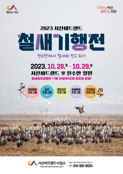 [충청뉴스큐] 충남 서산시 천수만에서 겨울 철새를 주제로 한 2023 서산버드랜드 철새기행전이 28일과 29일에 개최된다.