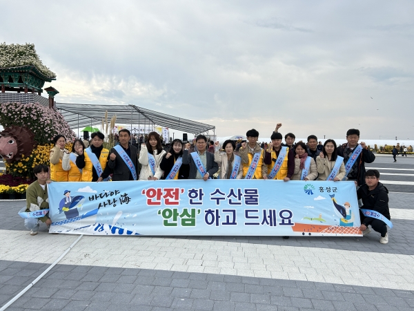 [충청뉴스큐] 홍성군은 24일 제22회 홍성사랑국화축제&김장재료전에서 우리 수산물 소비 촉진을 독려하는 캠페인을 실시했다.