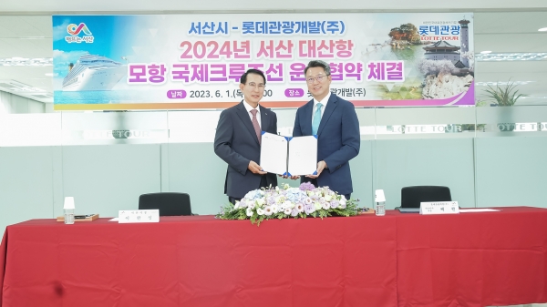 운항사 롯데관광개발과 글로벌 크루즈 선사인 코스타 크루즈는 27일 오후 롯데관광 서울지점에서 ‘2024년 크루즈 전세선 운항 업무협약’을 체결하고 서산 첫 국제크루즈선 운항을 공식화했다.