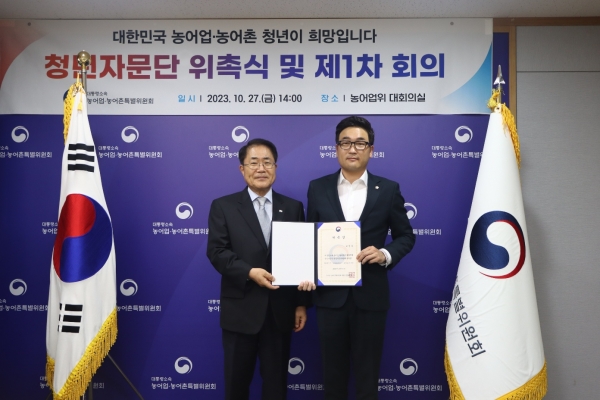[충청뉴스큐] “대한민국 농어업의 미래는 청년들의 어깨에 달려있다 해도 과언이 아닌 만큼 청년들이 지역을 살리고 나아가 대한민국의 생명산업인 농어업 발전을 위한 정책을 만드는데 보탬이 되고자 한다”지난 27일 대통령소속 농어업농어촌특별위원회 청년자문단으로 위촉된 홍성군의회 이정윤 의원은 장태평 위원장으로부터 농어업위 대회의실에서 위촉장을 수여받고 이같은 포부를 밝혔다.