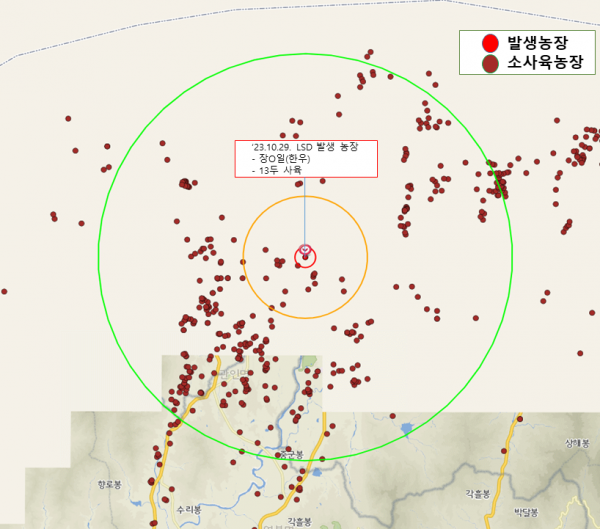 이에 따라 럼피스킨병 확산 차단을 위해 발생농장에 도 동물방역과 통제관, 동물위생시험소 소속 가축방역관과 가축위생방역지원본부 초동방역팀을 긴급 투입해 현장 통제, 소독과 역학조사 및 긴급 살처분·매몰 조치하고 축산농장, 작업장 등에 대한 흡혈곤충 매개체 구제, 일제소독 및 예찰 등 긴급 초동방역 조치하면서 발생농장 반경 10km 이내 방역대 소 사육 농가에 대해서는 5일 이내 긴급 백신접종을 완료할 계획이다.
