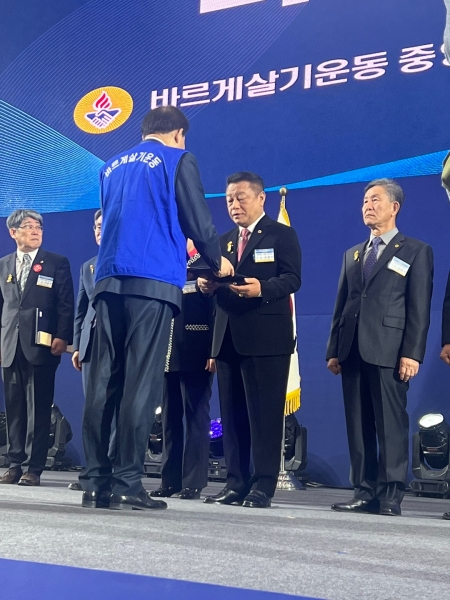 이날 행사에서 오명진 회장은 바르게살기운동의‘진실, 질서 화합’의 3대 이념에 따라, 지역사회에 기부 및 사회 공헌 활동에 앞장선 공로를 인정받아 수상의 영예를 안았다.