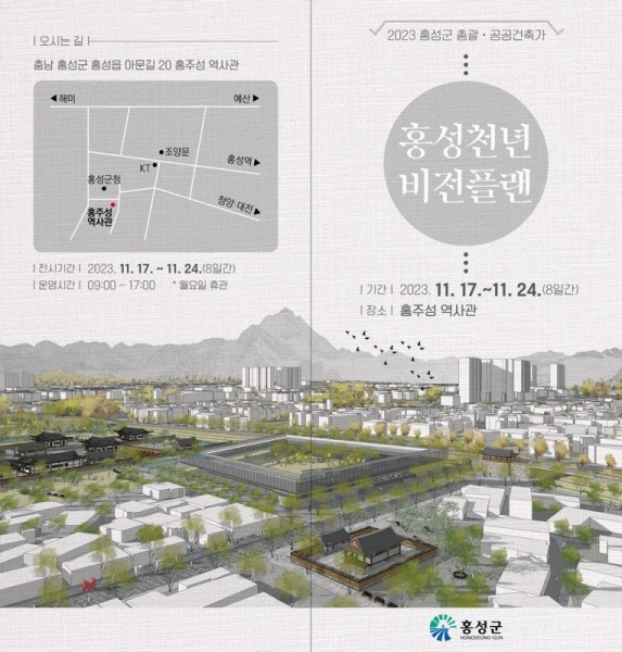 홍성군은 오는 17일부터 24일까지 홍성군 내 홍주성역사관에서 홍성 ‘천년 비전플랜’을 위한 ‘홍성 공공성지도 2023 전시회’를 개최한다고 밝혔다.