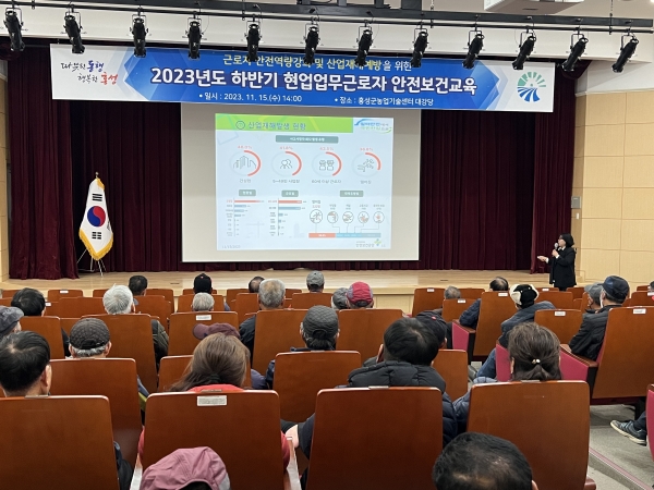 [충청뉴스큐] 홍성군은 15일 홍성군농업기술센터 대강당에서 현업업무 종사자 150여명을 대상으로 산업재해예방을 위한 근로자 안전보건교육을 실시했다.