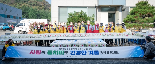 [충청뉴스큐] 대한적십자봉사회 청양지구협의회가 지난 14일과 15일 청양군농업기술센터 가공실습실에서 사랑의 마음을 전하기 위한 ‘사랑의 동치미 나눔’ 활동을 전개했다.