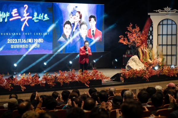 [충청뉴스큐] 청양군이 지난 16일 저녁 청양문예회관 대공연장에서 ‘2023 청양 트로트 콘서트’를 열어 지난 7월 폭우 피해로 어려움을 겪은 군민들을 위로했다.