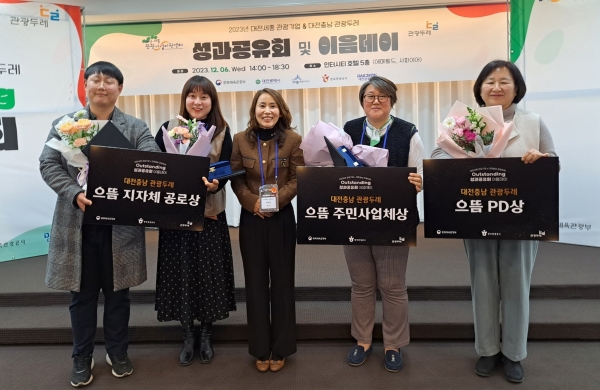6일 청양 관광두레 관계자들이 받은 상은 관광두레 으뜸 PD상 관광두레 으뜸 주민사업체상 관광두레 지자체 공로상 등이다.