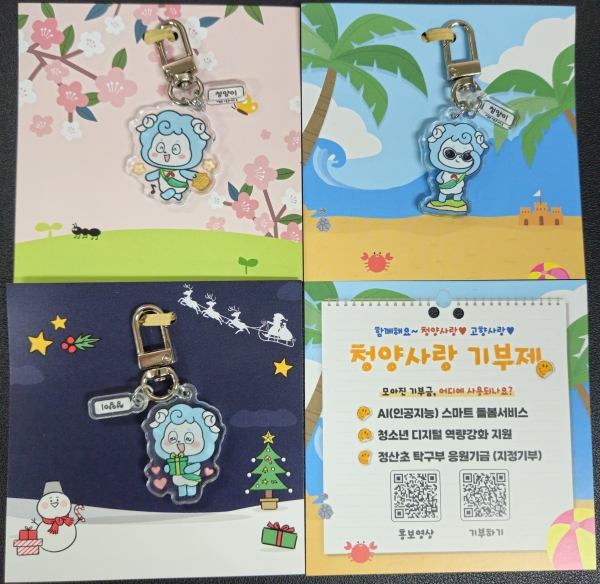 군은 20~30 젊은 세대들이 가방이나 자동차 열쇠에 작은 고리를 달고 다니는 것에서 영감을 받아 친숙한 청양이 캐릭터를 통해 자연스럽게 청양사랑기부제 기금사업을 홍보할 수 있도록 열쇠고리 제작을 기획했다.