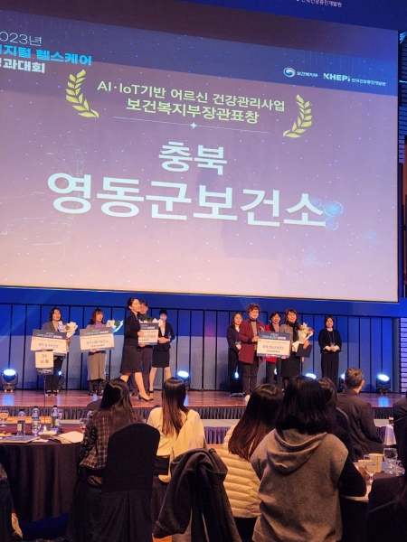 14일 군에 따르면 ‘2023년 디지털 헬스케어 부문 성과대회’에서 AI와 IoT를 기반으로 한 어르신 건강관리 사업으로 보건복지부 장관상을 수상했으며 충청북도가 주관한 심뇌혈관질환 예방관리 특화사업 부문에서도 특별상을 수상했다.