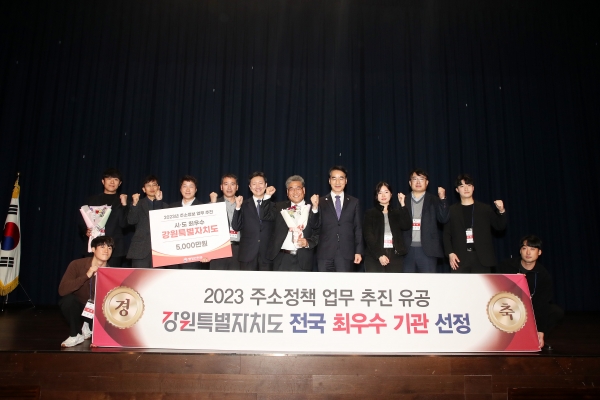 [충청뉴스큐] 강원특별자치도는 14일 삼척에서 행정안전부 주관으로 개최된 ‘2023 주소정책 성과 공유 워크숍’ 행사에서 2023년 전국 지자체 주소정보 업무 유공 평가 결과, 최우수 지자체로 선정됐다고 밝혔다.
