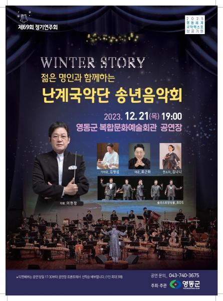 이 송년음악회는 영동군이 주최, 주관하며 난계 박연선생의 고장에서 우리 음악을 활성화함으로써 군민에게 국악을 통한 정서적 안정감을 제공하는 품격있고 수준 높은 국악 공연으로 잘 알려져 있다.