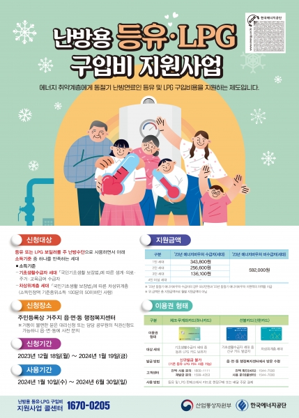 신청은 거주지 읍·면사무소에서 받으며 신청 기간은 12월 18일부터 2024년 1월 19일까지이고 사용기간은 2024년 6월 30일까지다.