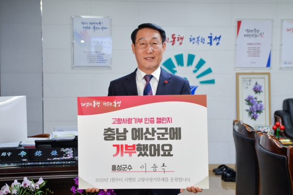[충청뉴스큐] 이용록 홍성군수가 지난 26일 고향사랑기부제 활성화와 기부문화 확산을 위해 진행되고 있는 ‘기부 인증 챌린지’에 동참했다.
