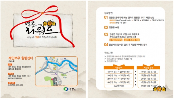 [충청뉴스큐] 충북 영동군이 관광객들을 대상으로 관광 인센티브를 지원하는 ‘영동리워드’ 관광상품을 이달 출시했다.