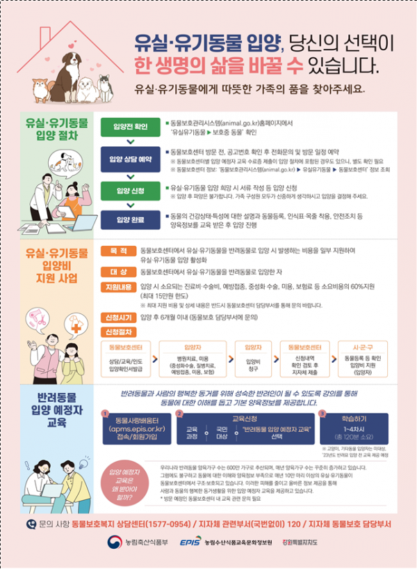 안재완 동물방역과장은 “이번사업을 통해 유기동물 안락사 제로화, 더 나아가서는 사람과 동물이 함께 행복한 강원특별자치도 만들 수 있도록 도민의 많은 관심과 적극적인 참여를 바란다”고 당부했다.