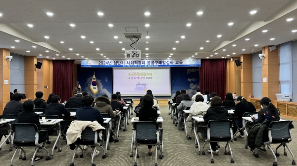 충남 사회적경제 유통지원센터 편우혁 과장을 강사로 초빙한 이날 교육은 사회적경제 기업이 생산하는 재화와 서비스에 대한 인지도 향상, 공공 구매에 대한 필요성 공감도를 높이기 위해 마련됐다.