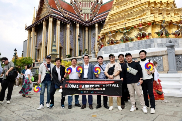 27일 방콕 왕궁을 비롯한 시가지에서 대한민국 전통부채인 태극선과 2024 글로벌바베큐페스티벌 영문 리플릿을 배부하며 대한민국의 멋과 맛을 함께 홍보하는 뜻깊은 시간을 가졌다.