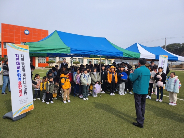 [충청뉴스큐] 청양군이 지난 6일 대치면 소재 수정초등학교에서 지역 특성에 맞는 재난 대응 민방위 훈련을 진행했다.