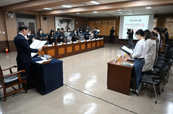 이날 선언식에는 이용록 군수와 부서별 청렴리더 30명이 참석한 가운데 부패행위에 관해 무관용 원칙을 적용하며 부패사건 및 뇌물 수수 신고와 관련해 발생한 모든 행위는 관련 법령 및 공직자 행동강령을 준수해 처분한다는 내용의 ‘부패 방지 방침’을 선언했다.
