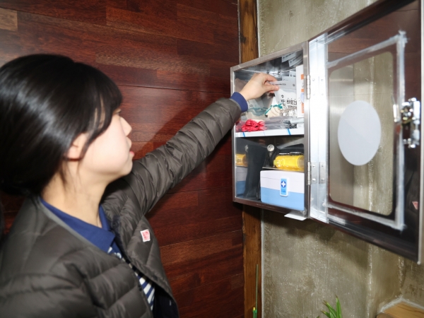 군은 각 대피소의 벽면이나 기둥 등 눈에 잘 띄는 곳에 비상용품함을 설치해 이용 편의를 도모했다.