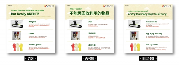시에 따르면 시 공식 사회관계망 서비스에 게시된 외국어 카드뉴스는 관내 거주가 증가하고 있는 다문화 가족, 외국인이 시정 주요 정보를 알기 쉽도록 베트남어, 중국어, 영어 등 3개 국어로 제작됐다.
