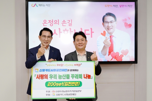 우리농업지키기운동본부가 주관하고 신용카드사회공헌재단이 후원해 마련한 1천만원 상당의 농산물 꾸러미 200박스는 저소득가정 및 서산시 기초푸드뱅크에 전달될 예정이다.