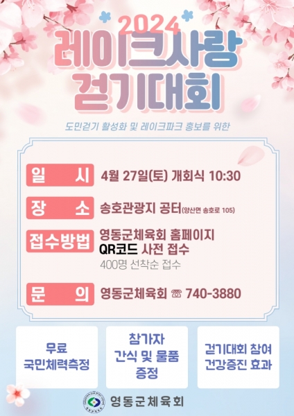 참여는 영동군체육회 홈페이지에서 QR코드로 사전접수를 받고 있으며 행사 당일 현장 접수도 가능하다.