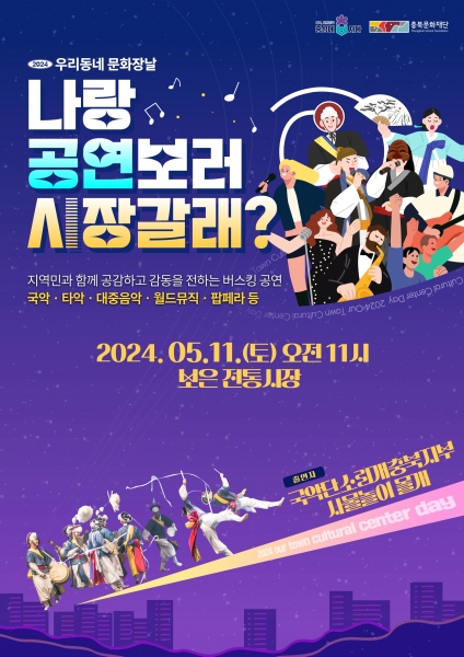 전통시장에서 국악, 대중음악, 월드뮤직, 팝페라, 레트로가요, 타악 퍼포먼스 등 총 9회에 걸쳐 다양한 장르의 문화공연으로 장날 시장을 방문하는 주민들에게 새로운 풍경을 선사할 계획이다.