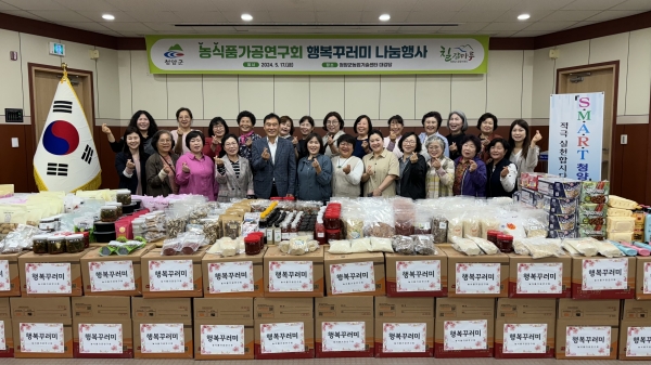 이번 행사는 관내 조손가정 및 한부모가정을 돕고자 자발적으로 기획했으며 행복꾸러미는 농식품가공연구회 회원들이 직접 생산한 찹쌀, 청국장, 고추장, 쌀강정, 구기자 한과 등 농산물 및 가공 상품 총 40종으로 구성됐다.