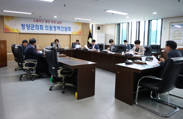 [충청뉴스큐] 청양군의회 의원 정책간담회가 제300회 제1차 정례회를 대비해 의원 및 집행부 관계 부서장이 참석한 가운데 21일 특별위원회 회의실에서 개최했다.