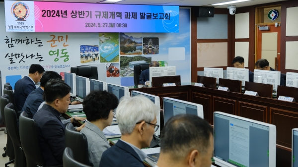 [충청뉴스큐] 충북 영동군은 실효성 있는 규제를 협업·발굴하고 공유하고자 지난 27일 ‘2024년 상반기 규제개혁 과제 발굴 보고회’를 개최했다.